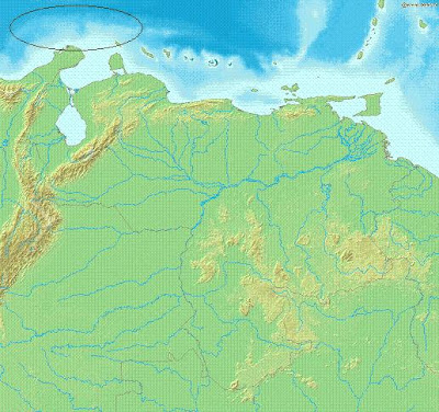 The blue spots represent 1000 votes for the opposition and the red spots 1000 votes for chavismo. The different colour areas represent the electoral districts (as opposed to the municipalities). We will get the green circuit for sure.