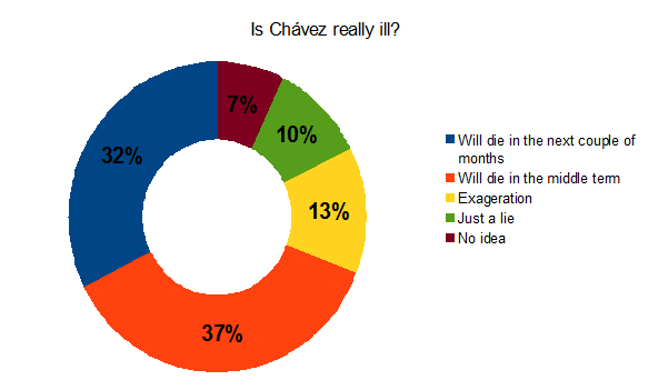 68 persons took part in the poll. I think Chávez has greatly exaggerated his illness, but that's my guess and on the right you see some other people's guesses - foreigners and Venezuelans alike. What is it? Anything could be right: this is Venezuela.